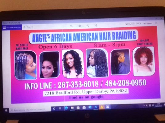 How can I contact Angie’s African American Hair Braiding?